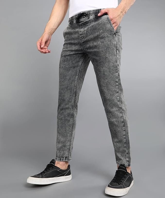 Stylish & Trendy Towel Washed Dark Blue Jogger Jeans – Elasticized Waistband with Drawstring
