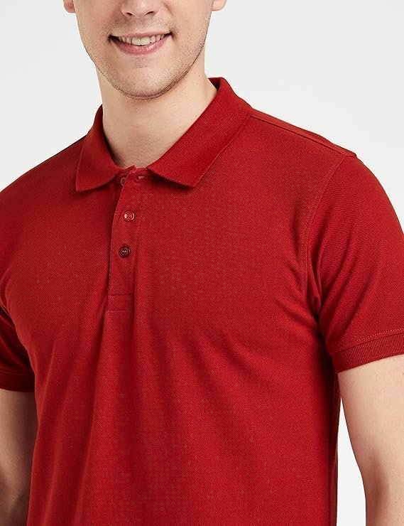 Men’s Cotton Rich Solid Polo T-Shirt, Red