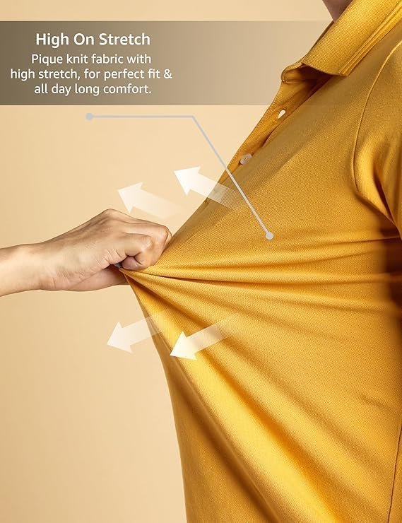 Anti curl collar made with all over elastane along with jacquard tipping