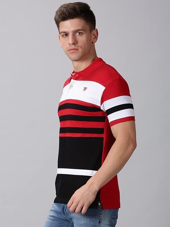 Men’s Cotton Striped Polo T-Shirt, Red/White