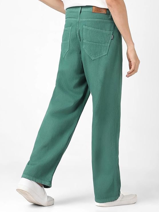 Men’s Loose Mid Rise Baggy Jeans – Dark Green