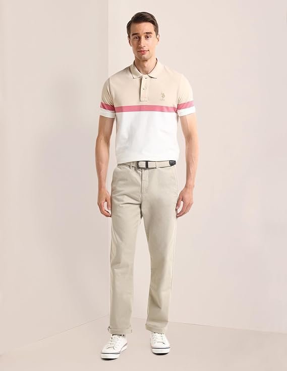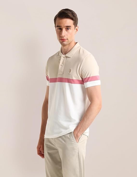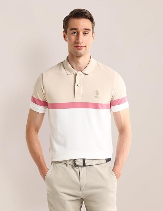 Men’s Polo Regular Fit Shirt, White/Beige