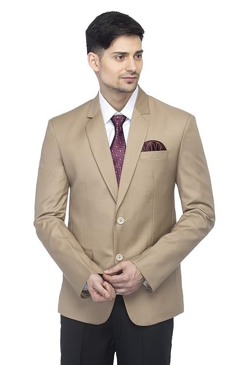Men’s Slim Fit Notched Lapel Single Breasted Solid Blazer, Beige