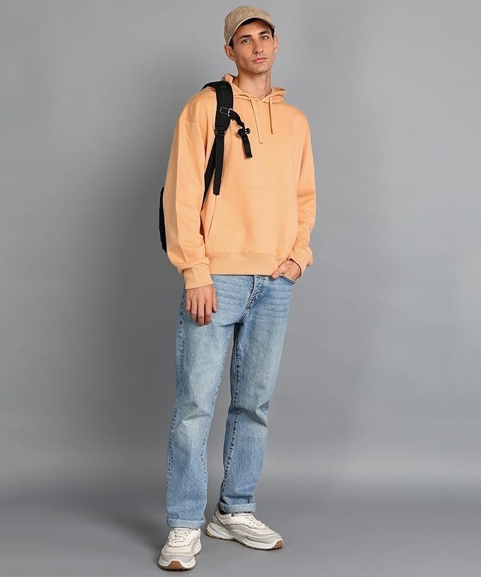 Men’s Solid Oversized Hoodie, Orange