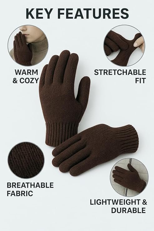 Unisex Winter Woollen Gloves for Men and Women – Coffee