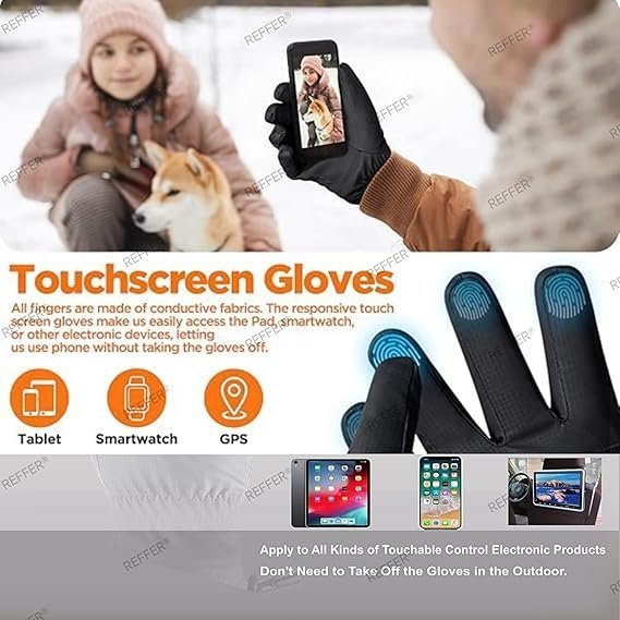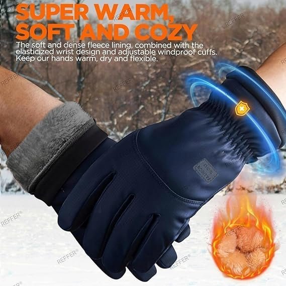 These winter waterproof ski gloves are made with ski-friendly waterproof fabric outside, soft, cozy and dense fleece lining inside. The adjustable cozy cuff can be fastened to block cold wind and ice.