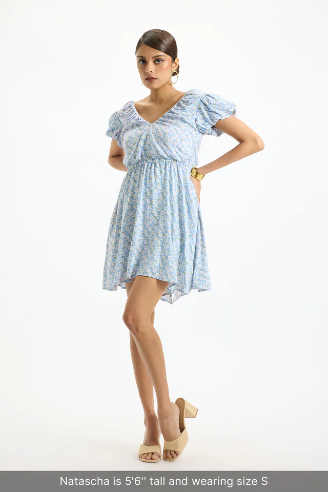 Avani with her puff sleeves and plunging neckline looks chic. Picture yourself enjoying a Saturday afternoon read in the park with this one.